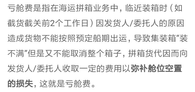 由于生产、质检、商检、物流等原因导致入仓不及时没能赶在截货前到货;海关查验导致赶不上船,尤其是报关太晚或货物有问题时;取消出货却没有及时退订舱位;较大比例的缩方、涨方或超重——“缩方”可能导致箱子装不满;“涨方”可能导致货物装不下;“超重”也可能导致箱子装不满;货物进仓后发现货物本身问题导致无法承运(如属于危险品)等。